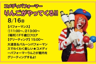 コメディパフォーマーりんごがやってくる!! パフォーマンスショーの他にも館…