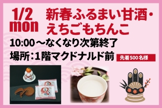 新春ふるまい甘酒・えちごもちんこ 先着500名様にプレゼント