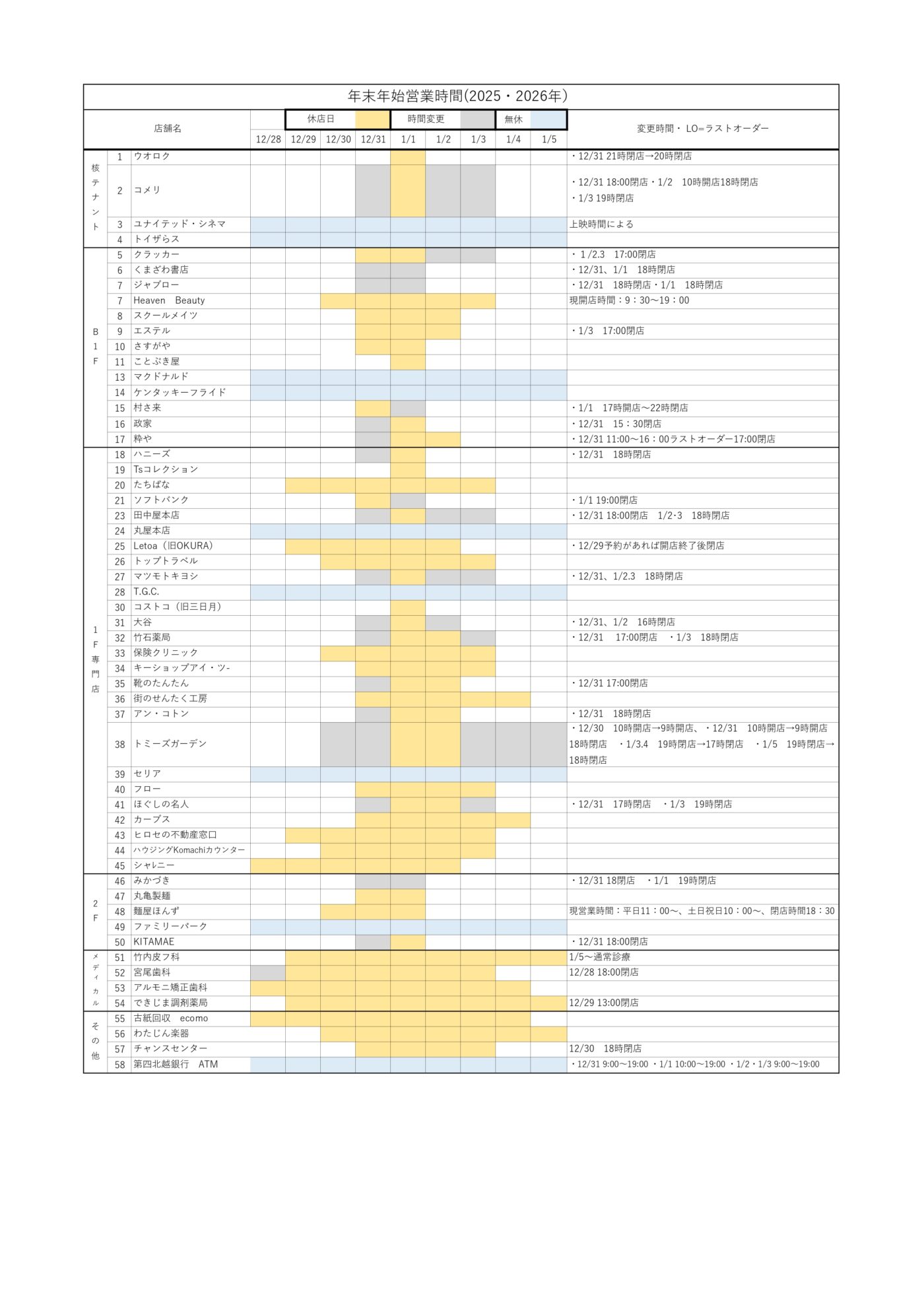 また、2025年12月29日(月)~2026年1月4日(日)は、